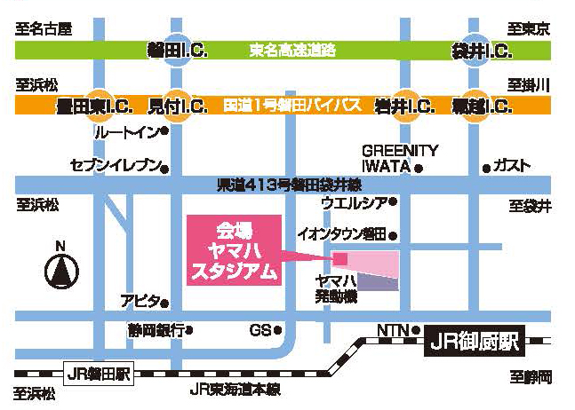 - 東名高速道路・磐田ICより約5Km/袋井ICより約6.5Km