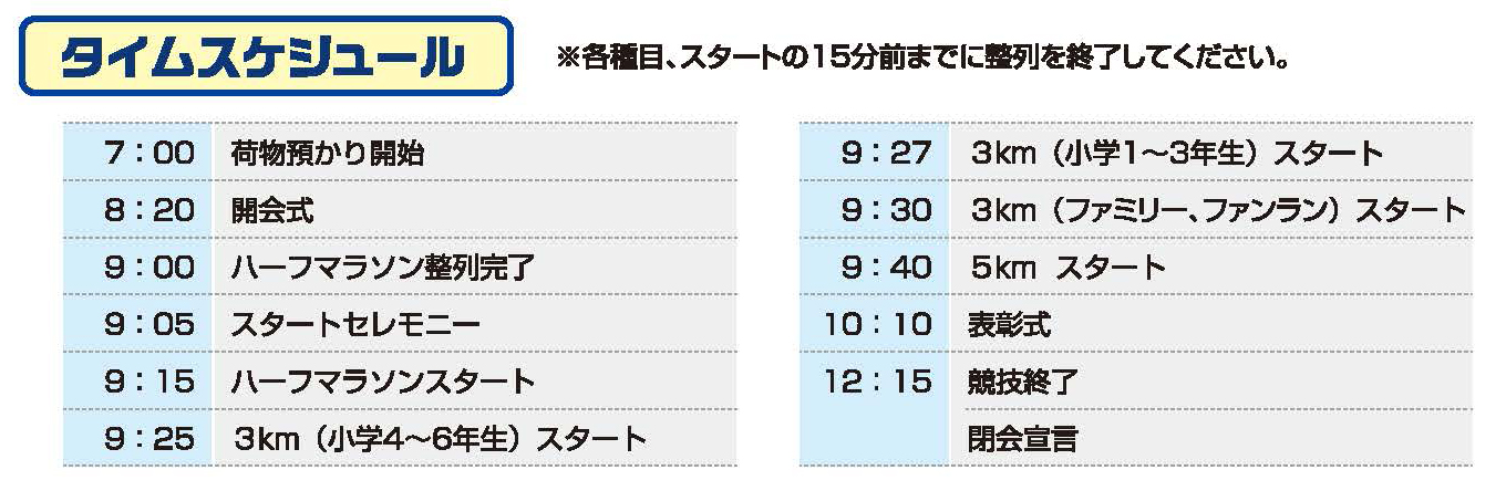- 最後尾車スタート後のスタートは認めません。(ハーフマラソン)