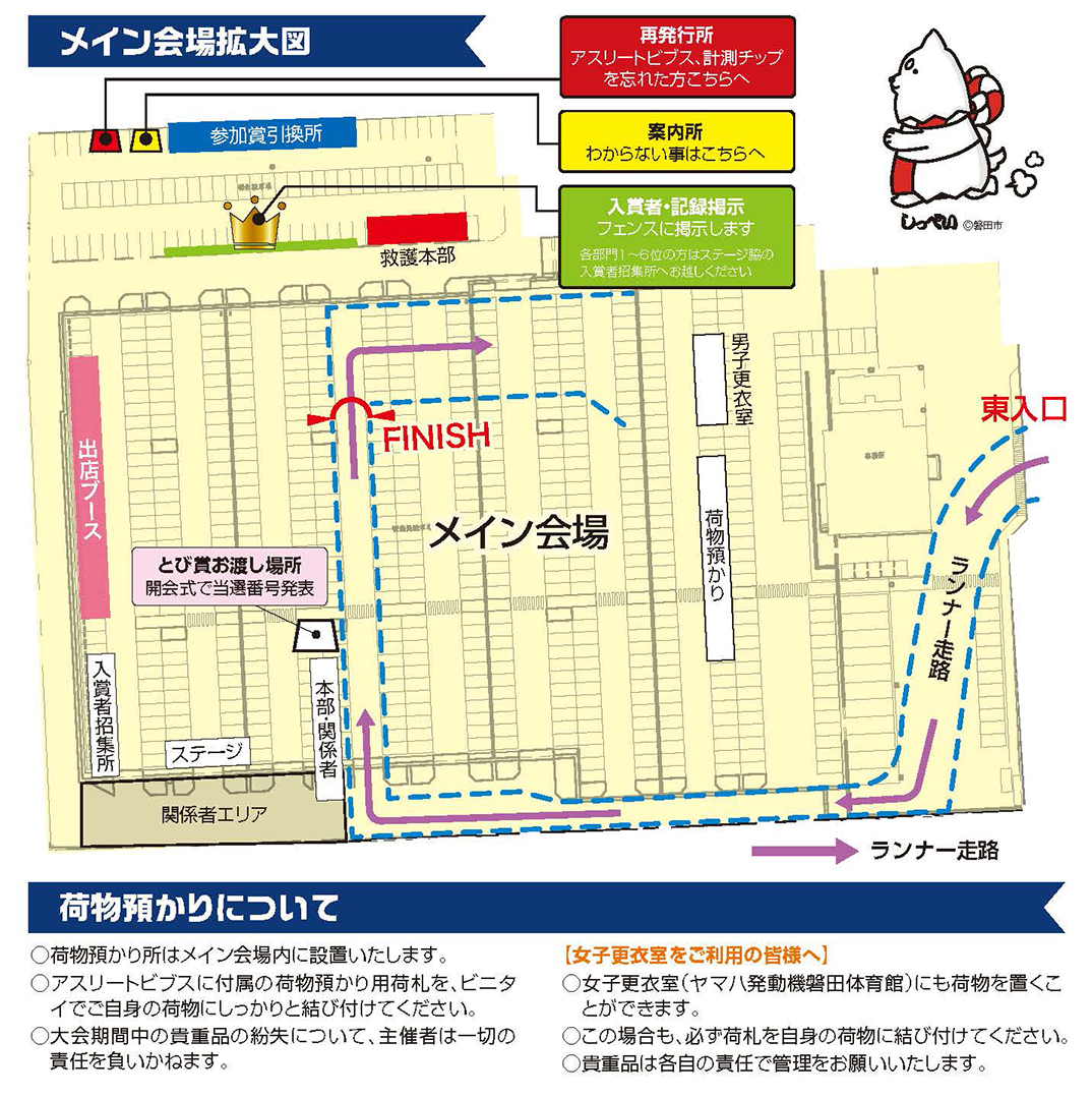 - 会場内救護テント及び走路上に医療関係者を配置しております。救護バイク・ランナーも出走しますので、必要に応じて声をかけてください。救護が必要な場合は、アスリートビブスに記載した「大会救護連絡先」へ連絡してください。