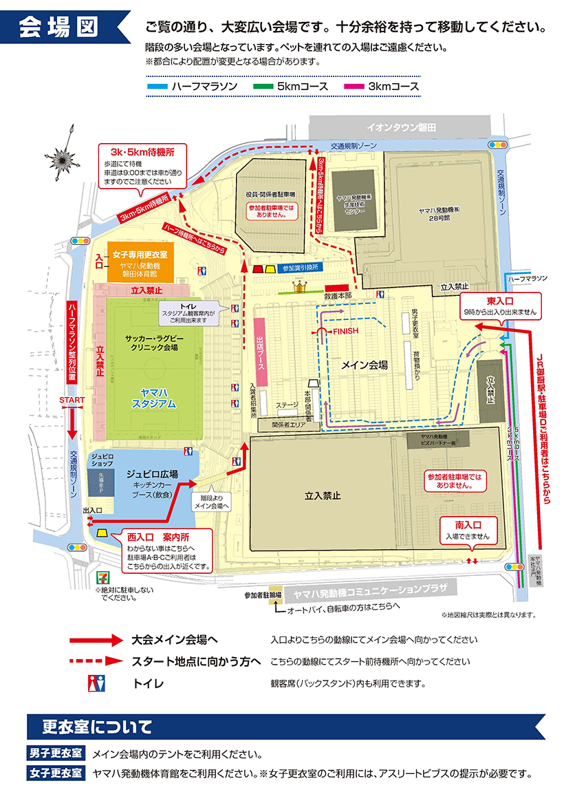 3km・5kmのコースと交差するため一時的に横断できない時 間帯があります。ご注意願います。