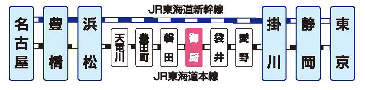 所要時間 約50分- ・JR浜松駅より東海道本線に乗り換えて、JR御厨(みくりや)駅へ。