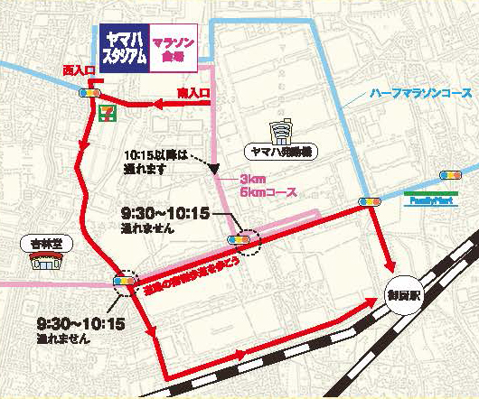 3km・5kmのコースと交差するため一時的に横断できない時 間帯があります。ご注意願います。