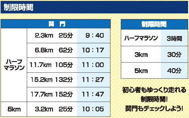 - 最後尾車スタート後のスタートは認めません。(ハーフマラソン)