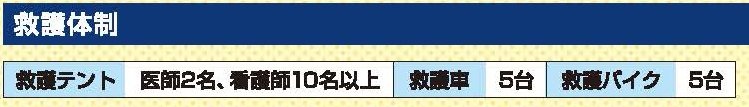 - 会場内救護テント及び走路上に医療関係者を配置しております。救護バイク・ランナーも出走しますので、必要に応じて声をかけてください。救護が必要な場合は、アスリートビブスに記載した「大会救護連絡先」へ連絡してください。